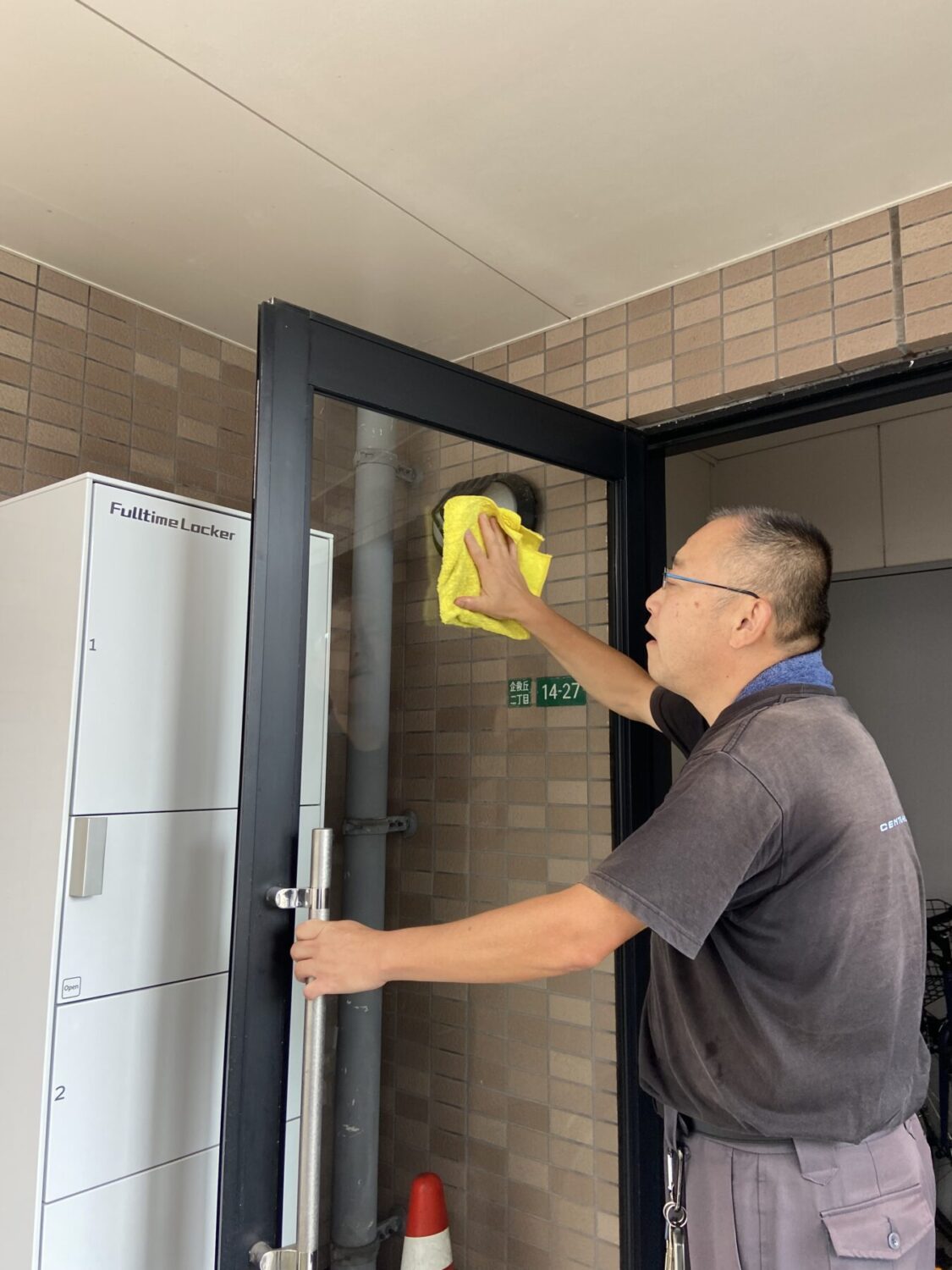 エントランスガラス拭き |