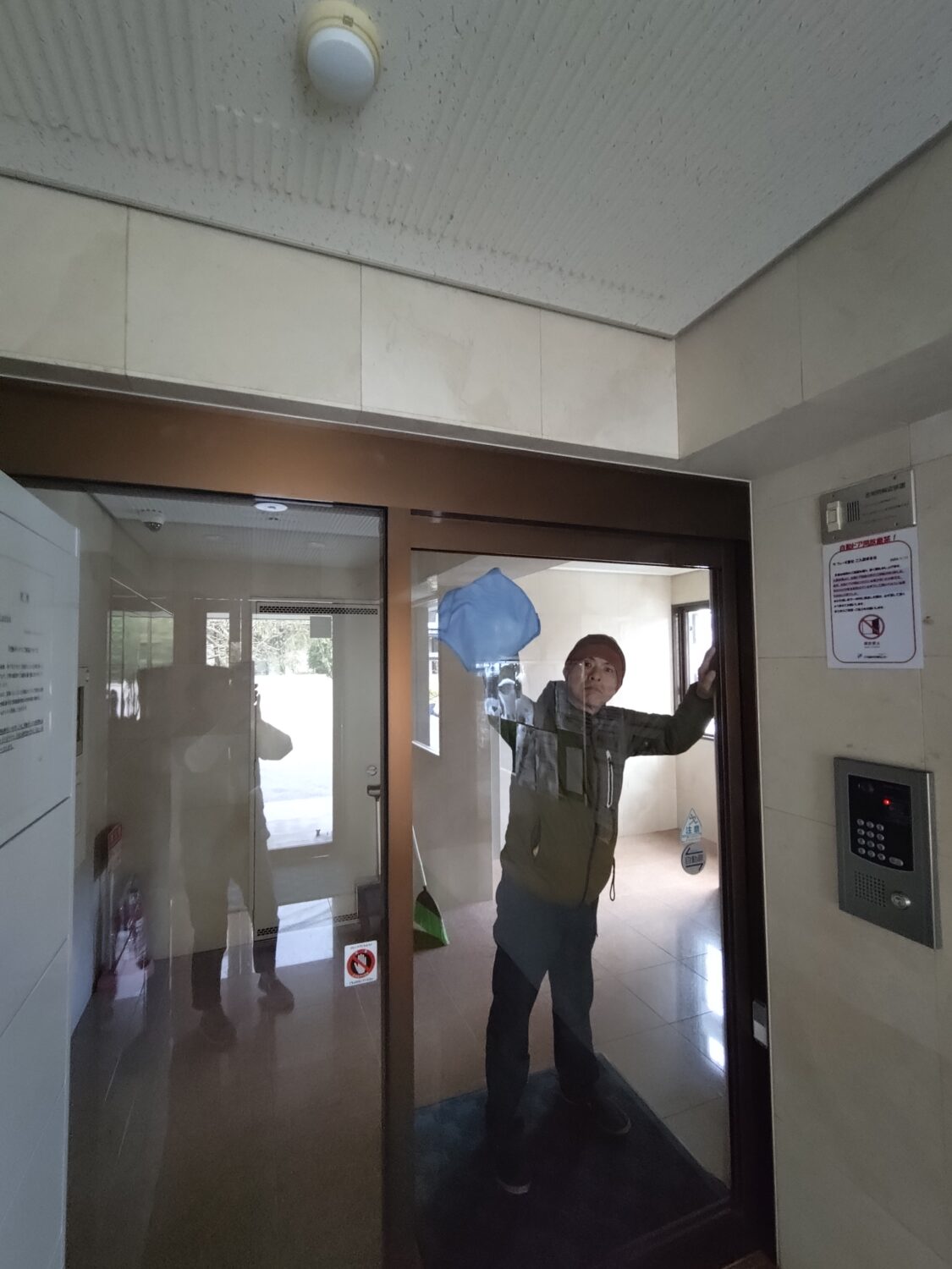 | エントランスガラス拭き |