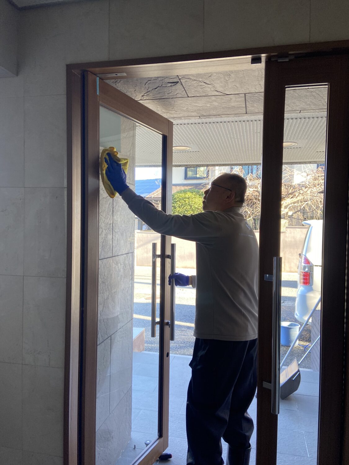 | エントランスガラス拭き |