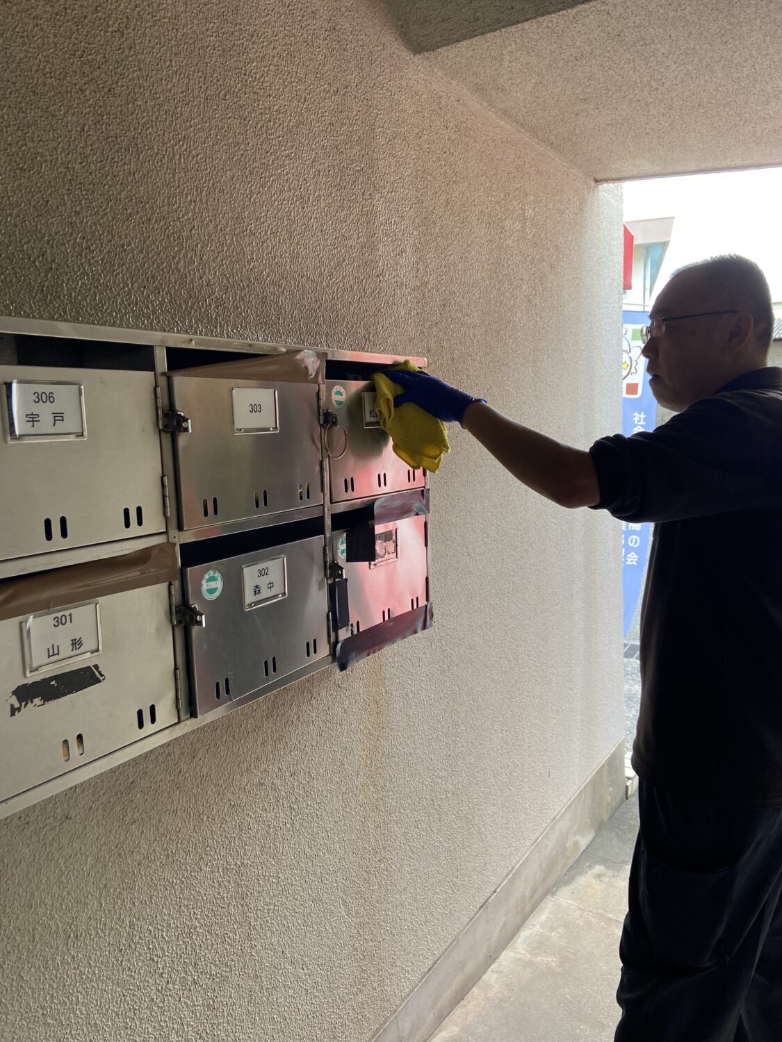 | 集合ポスト拭き |