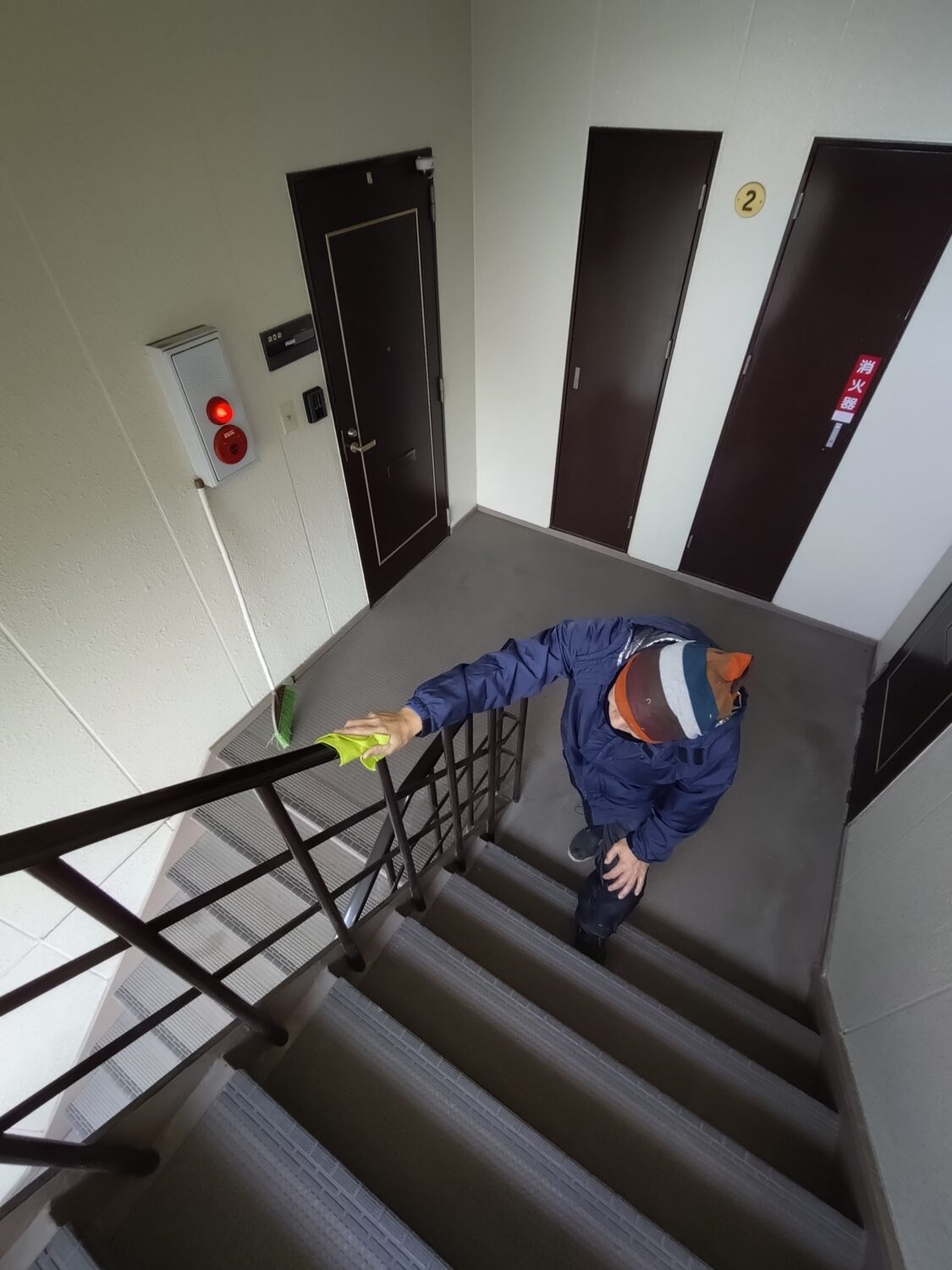 階段手摺拭き