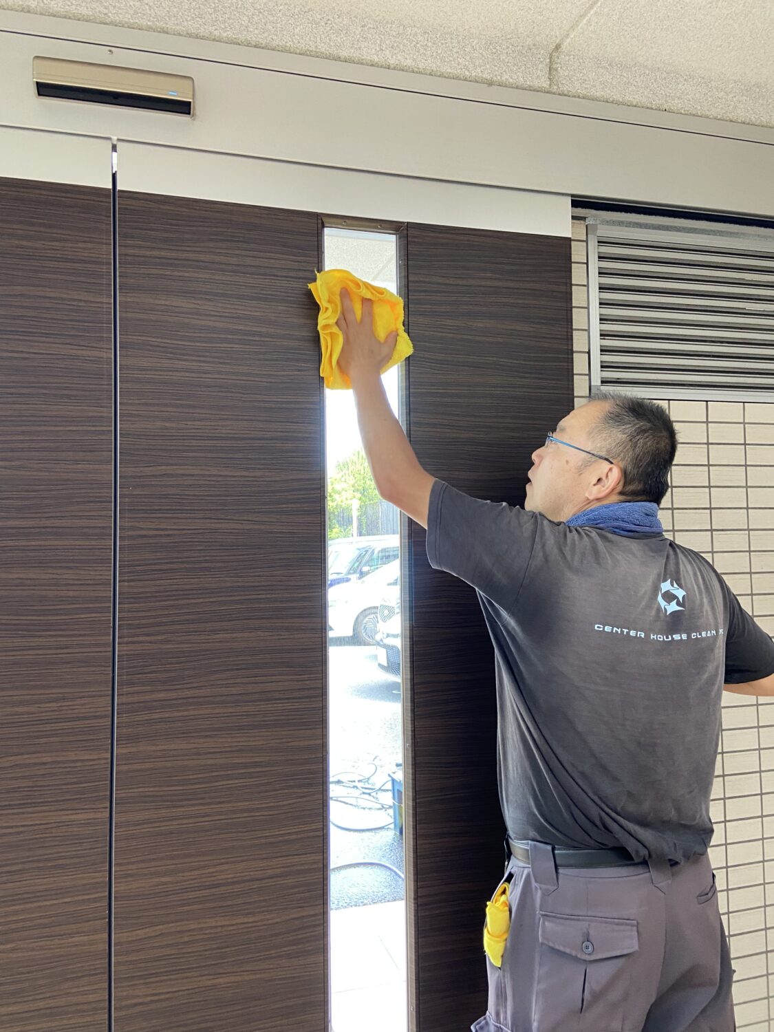 エントランスガラス拭き |