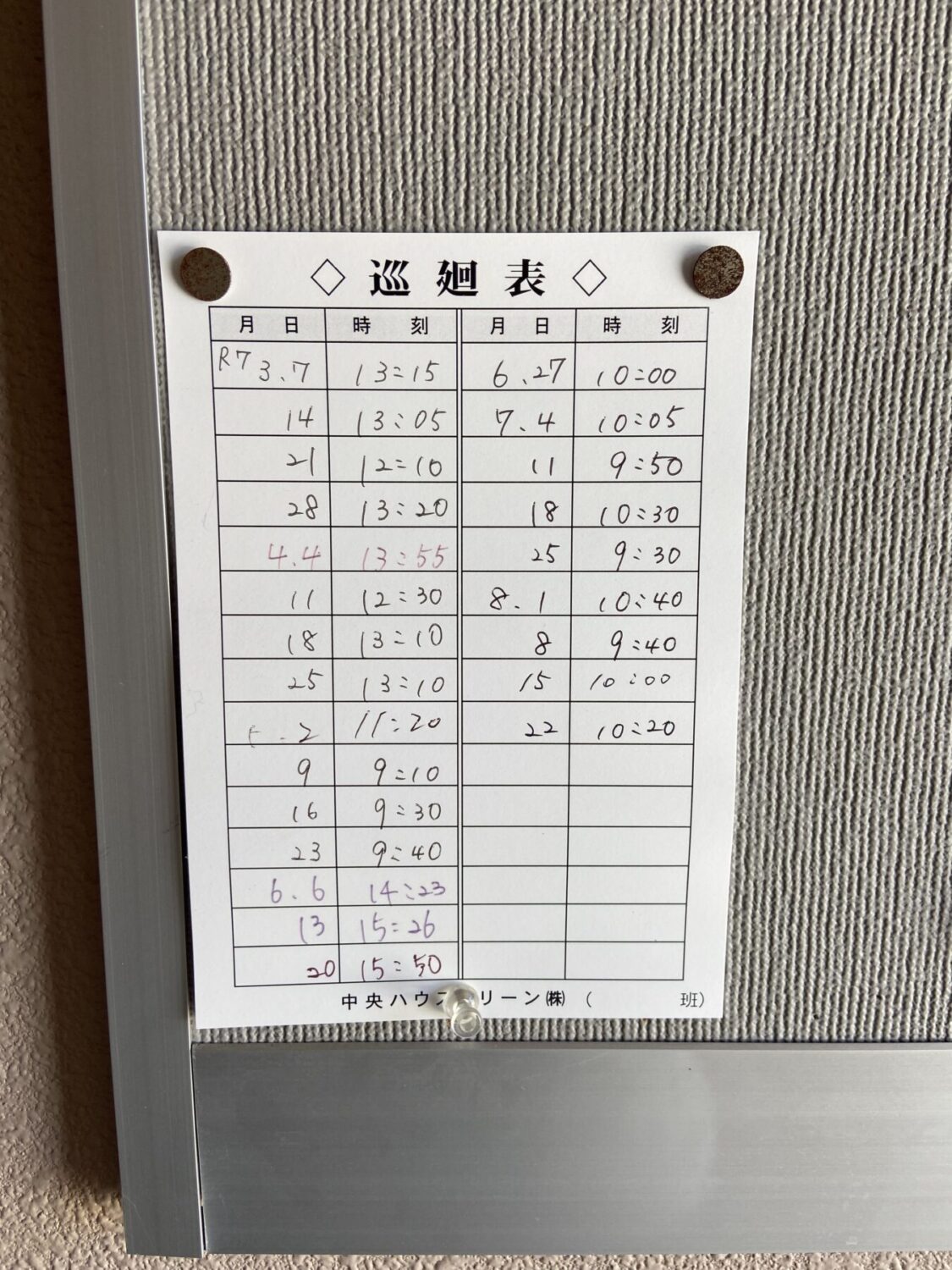 | 清掃巡回表 |