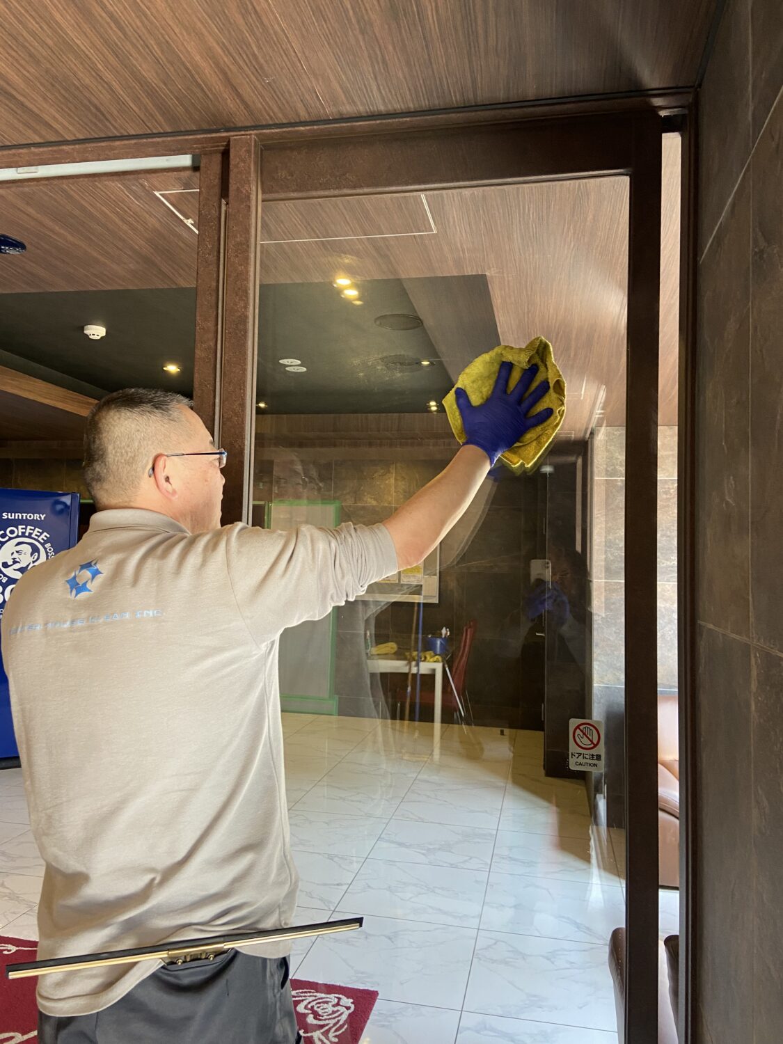 | エントランス ガラス拭き |