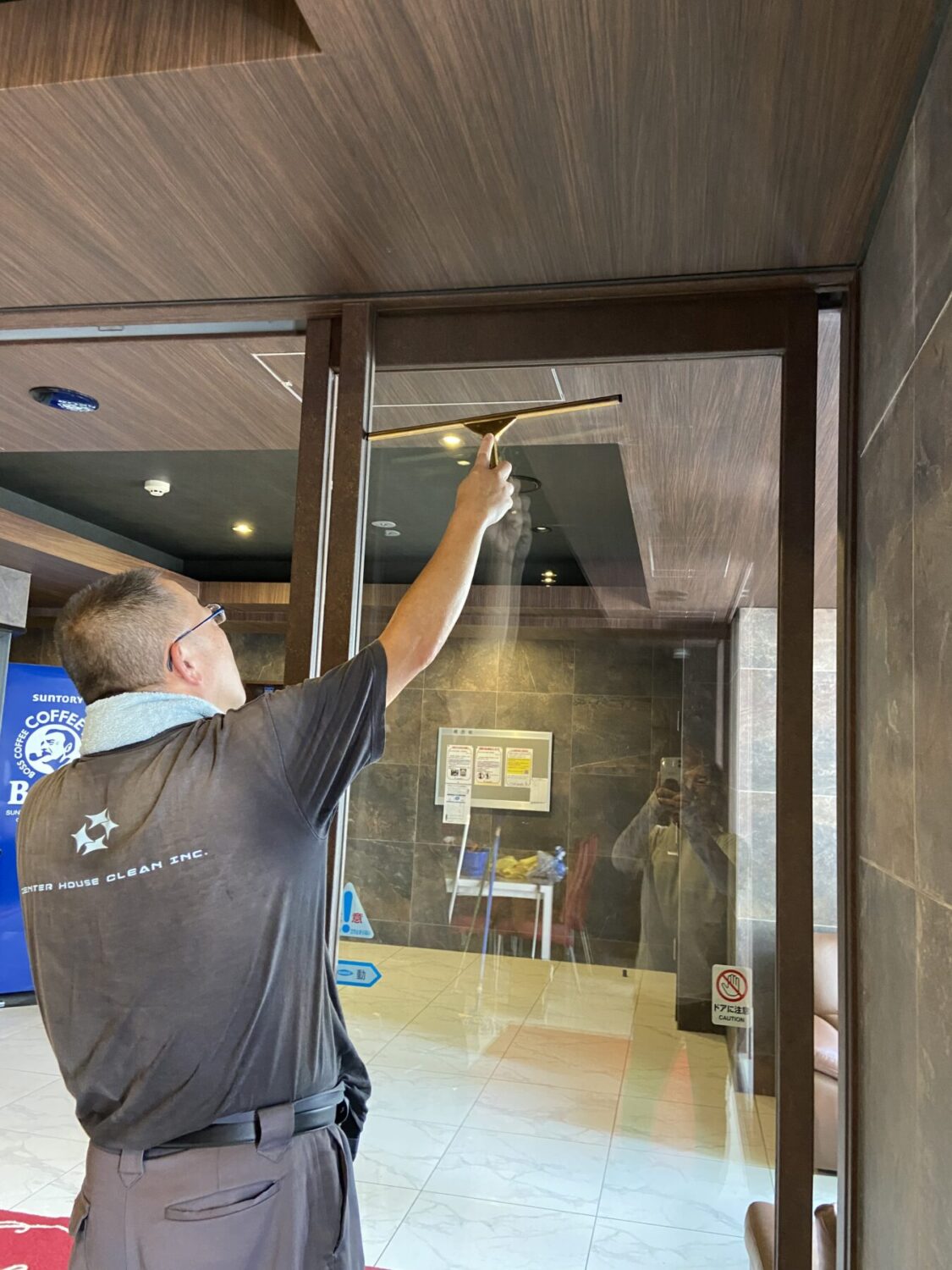 | エントランス ガラス拭き |